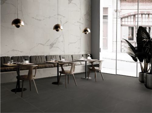 Gạch vân đá gam tối, bề mặt mặt satin cho sàn; tường sử dụng gạch [...]