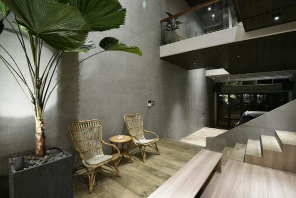 Mái ngói chạy dọc từ đỉnh tầng ba xuống hiên tầng trệt, giúp gió lùa [...]